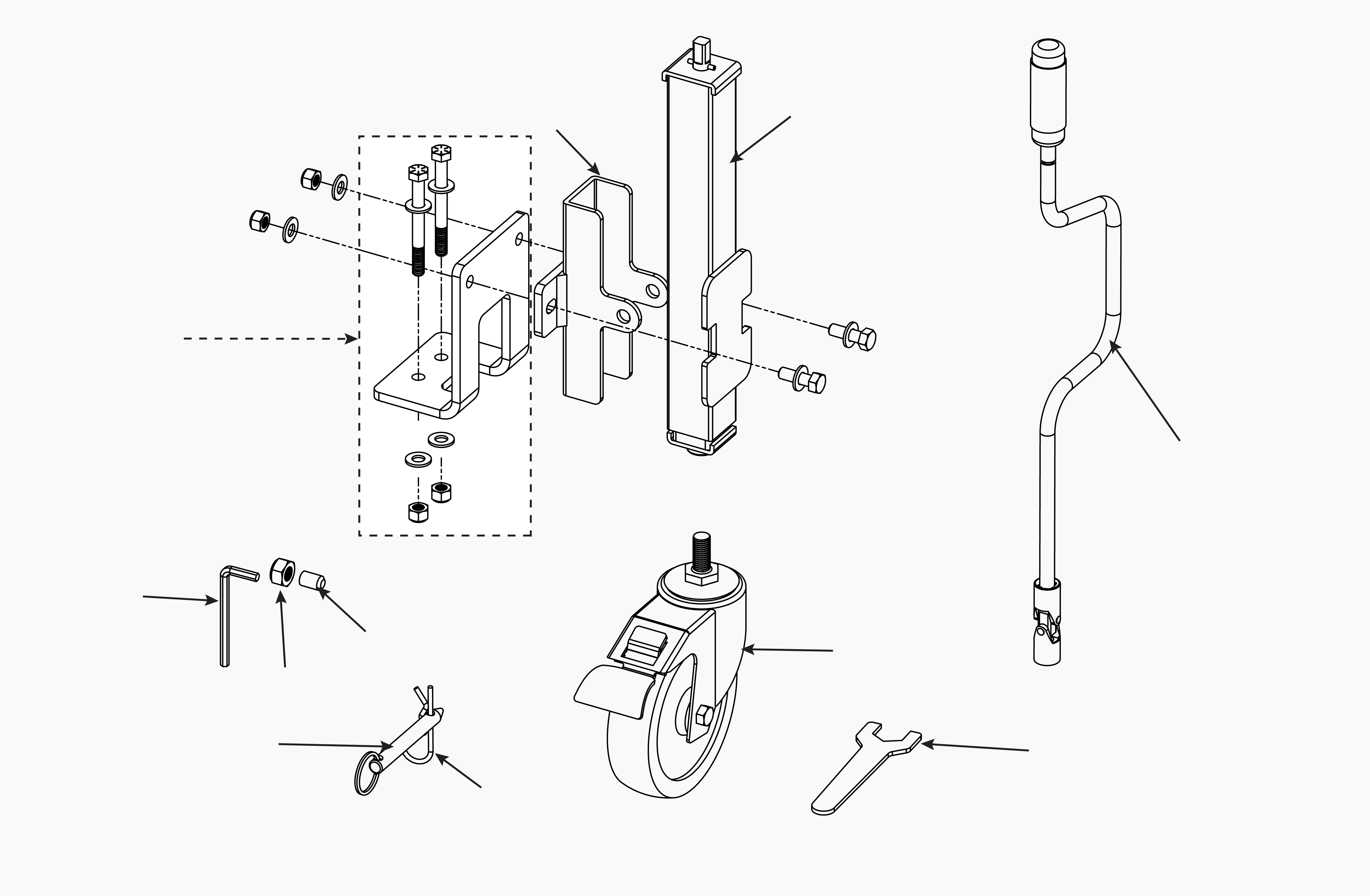 The 3rd Wheel Jack Stand is specially designed to support the Cyclone Rake when it's not on your mower. All the genuine jack stand parts are made with welded steel construction and the parts come with a mirror chrome finish. The adjustable height and oversized locking caster will make it the easiest way to hitch up your Cyclone Rake to your mower. Find all the jack replacement parts you need in the list below.