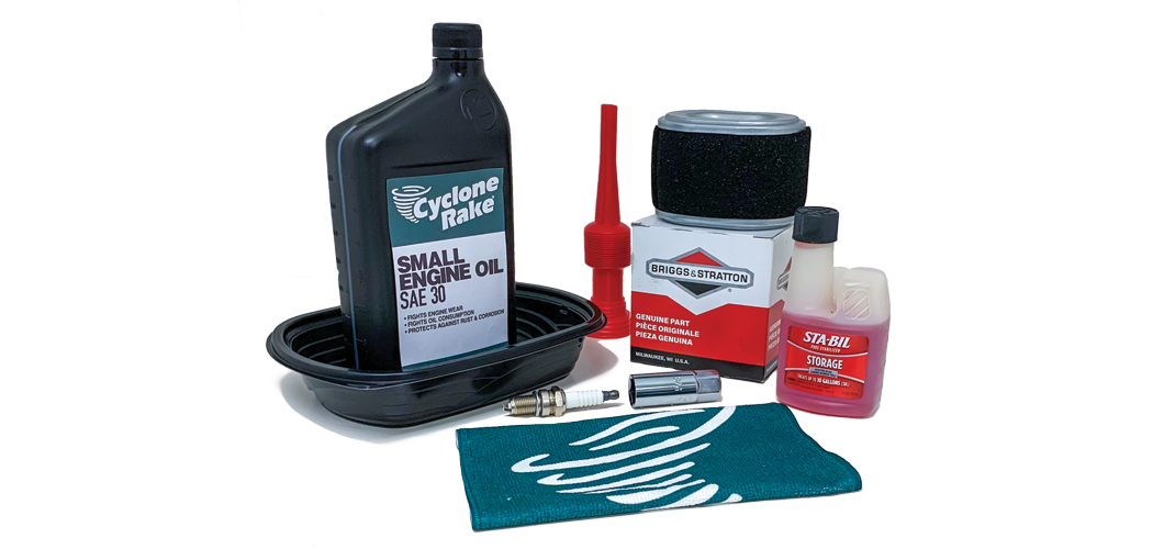 The Cyclone Rake Engine Maintenance Kit gives you  all the parts and tools together in one convenient package to make maintaining your 6.5HP Vanguard engine easy. Our engine repair tool kit includes an air filter, oil, spark plug, spark plug socket, fuel treatment/stabilizer, funnel and a Cyclone Rake shop towel.