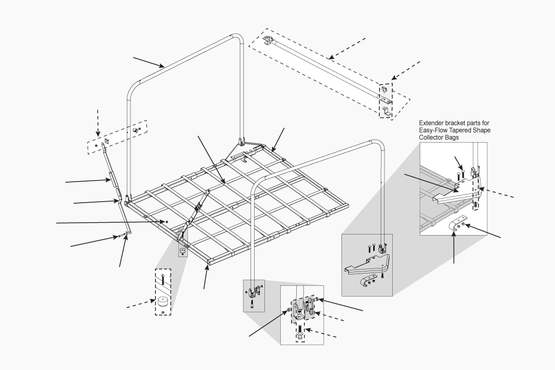 The Collector Frame provides the overall support for your Cyclone Rake collector bag. It is comprised of a welded steel base and two aluminum side tubes which form the supporting structure for your high-capacity Collector Unit. We maintain a complete inventory of all Cyclone Rake XL collector frame replacement parts and we’ll ship your parts out to you the next business day.